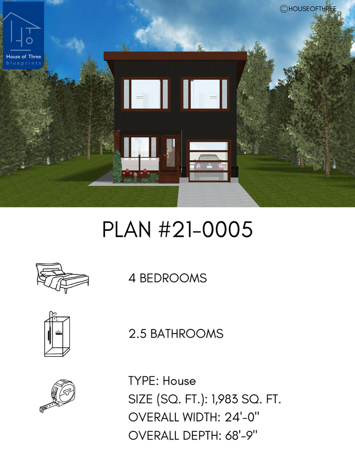 This stunning four-bedroom predesigned plan offers the perfect blend of convenience and comfort. Its thoughtful design and versatile spaces cater to the needs of modern families, promising a relaxing haven for all. Learn more about Plan #21-0005.